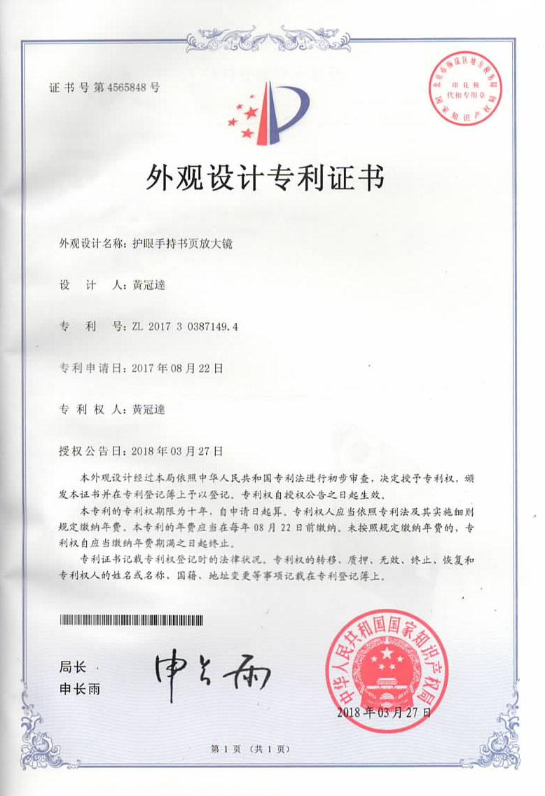 擁有外觀設計專利證書!